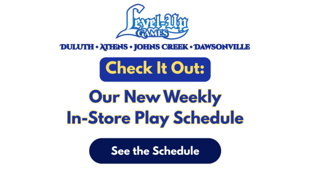 This is Andrew, the owner of Level Up Games. I want to share some important news regarding our headquarters: after nearly two years of searching for a new home, we are moving from Duluth to the Mall of Georgia area in Buford.